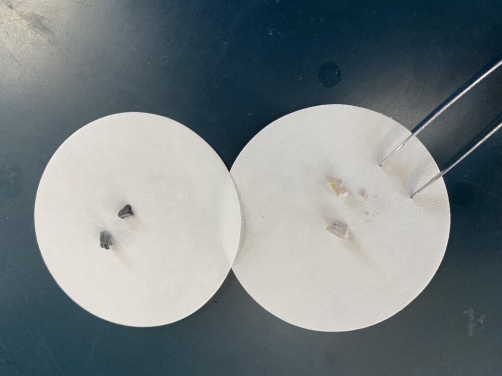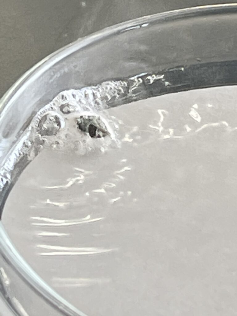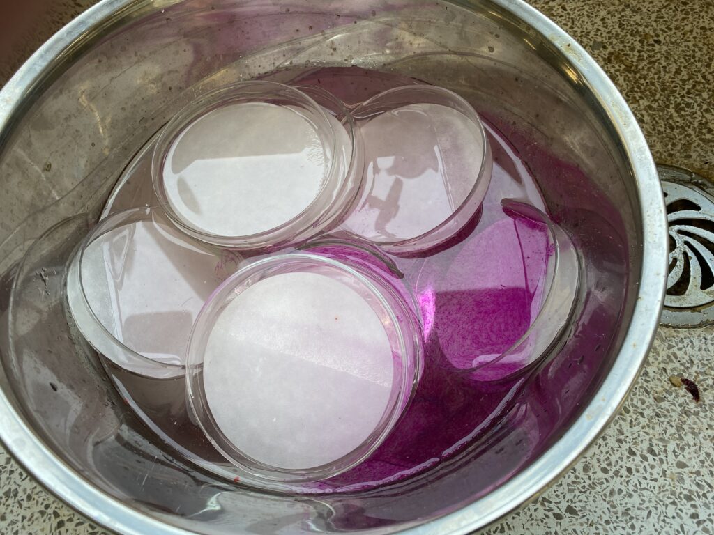 それぞれを小さな米粒大に切り分けたものを、水を満たしたシャーレに放り込みます。