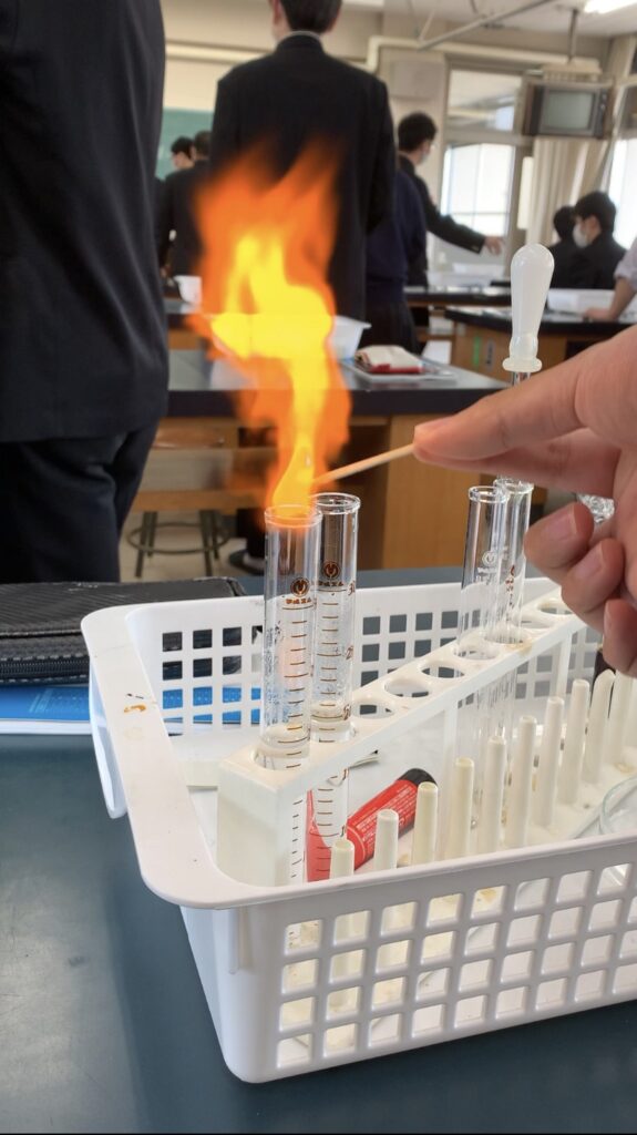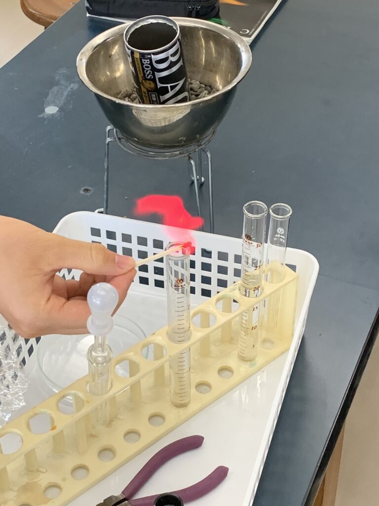 知識の整理から内容説明など、通常授業で行う前段部分をバッサリ端折って、今からやる事と注意点だけを簡潔に伝えて実験開始。実験内容の振り返りは、次回の授業でChromebookでレポート作成練習を兼ね、まとめて行います。