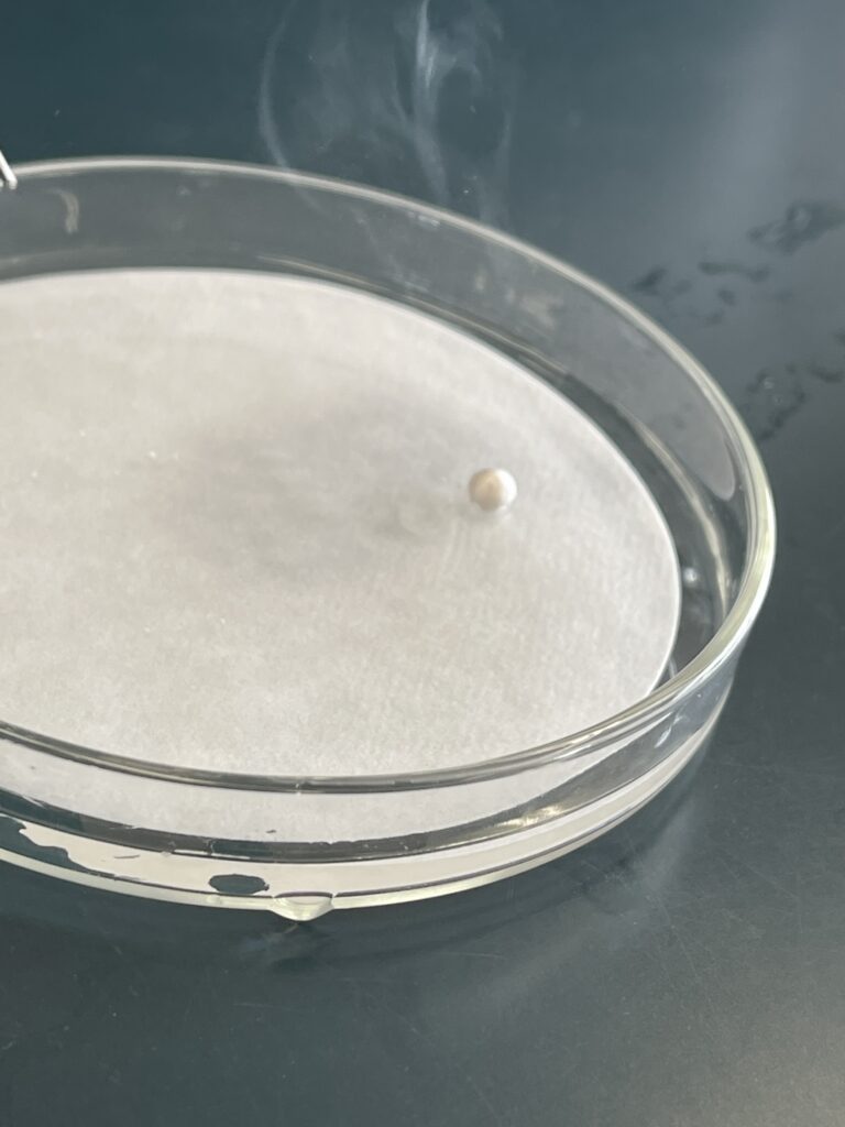 リチウムは大したことありませんが、ナトリウムはこれだけ小さくても激しく反応します。まさに「山椒は小粒でもぴりりと辛い」というやつです。