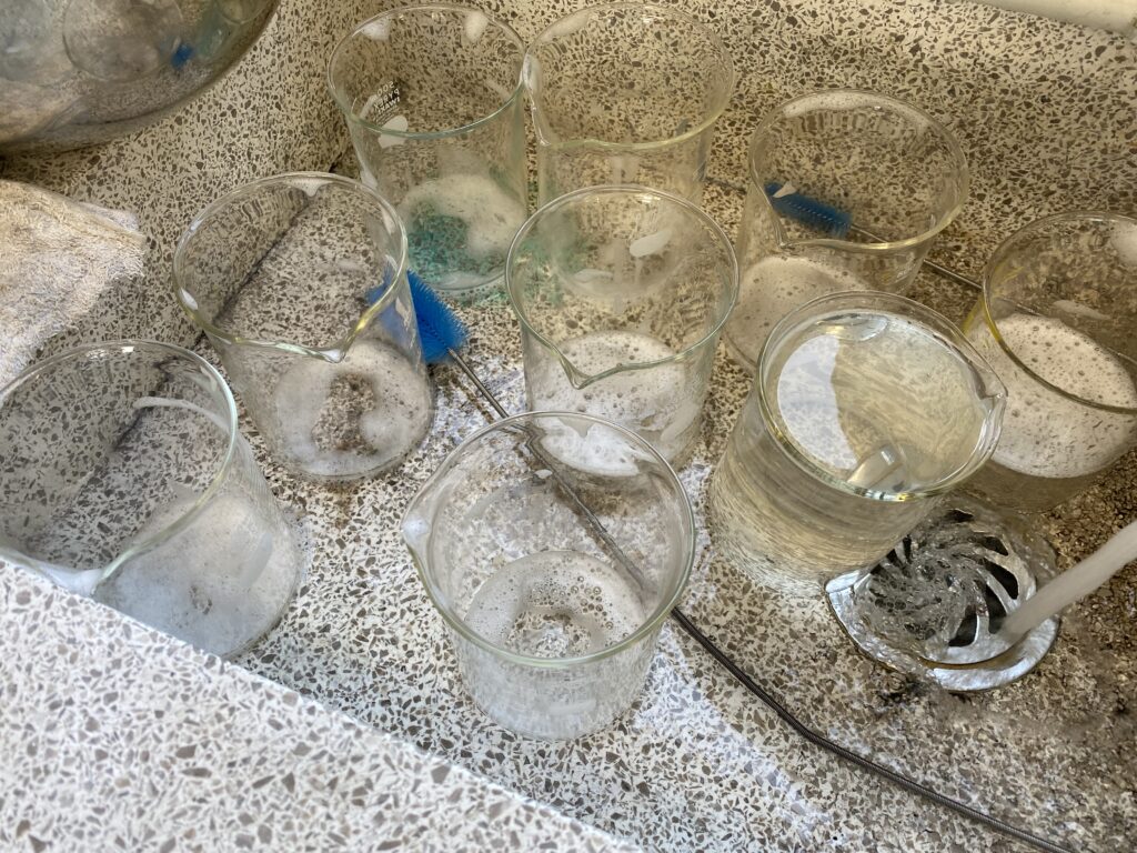 理科の実習助手がいないので、洗い物をためておくと後で大変なことになります。