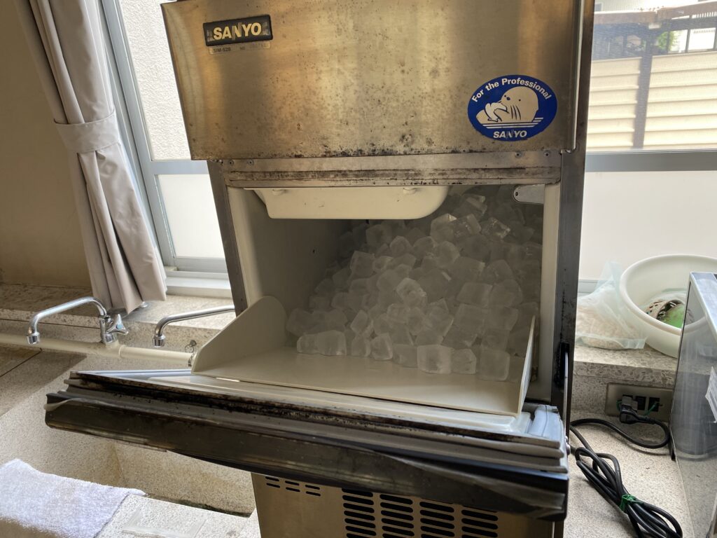 実験室の製氷機の供給能力だと当日2クラス分を確保できないので、前日にタッパーにある程度取り込んで冷凍庫に保管しておきます。