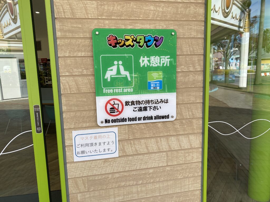 ここには、コンセント付きのテーブルが備えてあって、キッズスペースとは名ばかりの大人の空間になっています。