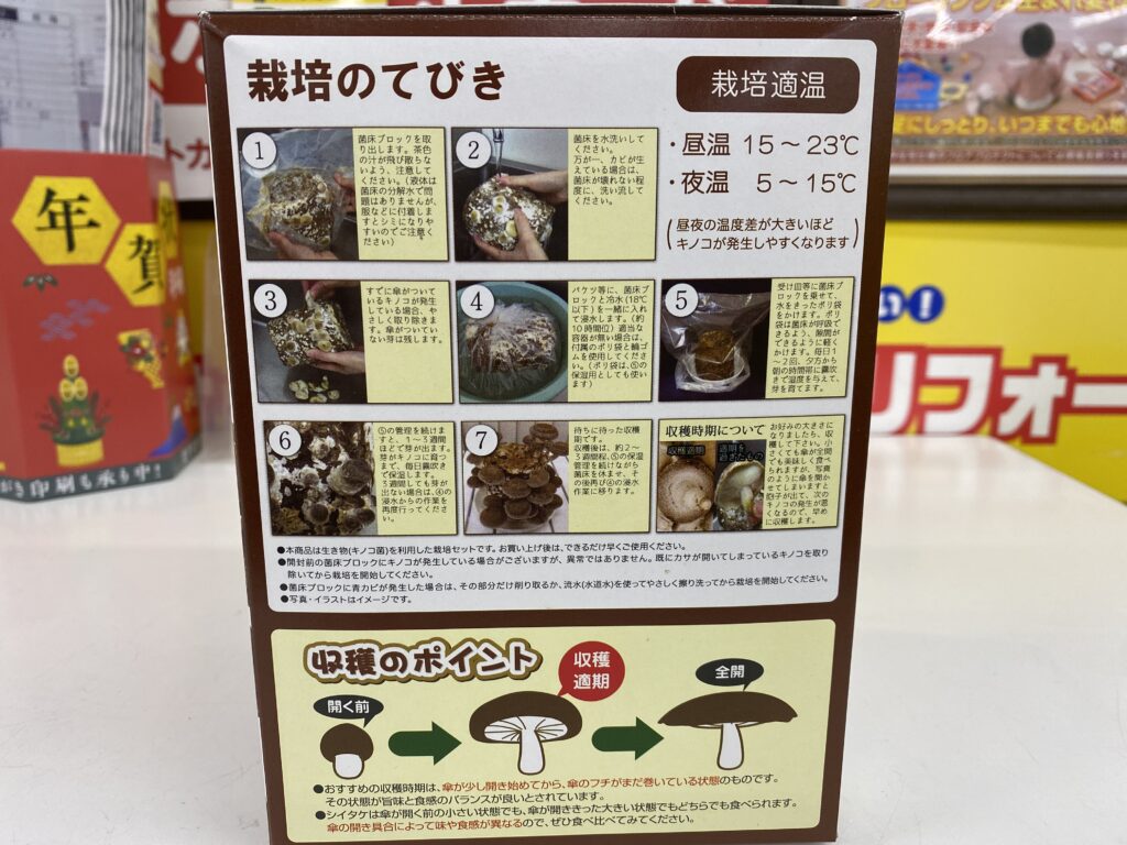 1回目の栽培が上手く行ったらもう1セット購入して、常時しいたけを食べられる状態にしておけば、もはやスーパーでしいたけを買う必要がありません。